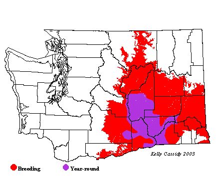 Small numbers of Burrowing Owls formerly bred in western Washington prairies, but the owls are now limited to the shrub-steppe zone of eastern Washington. Several artificial burrows are currently being used in the potholes area (Grant County.) The Hanford site and the surrounding tri-cities area host the highest concentration in the state. Burrowing Owls can be found in Washington from mid-March through August and rarely during the winter as well.
