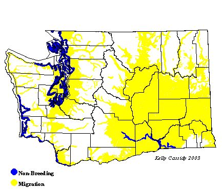 Greater Yellowlegs are common migrants throughout Washington's lowland wetlands. Greatest densities are seen from mid-March through mid-May, and again from late June through October. Some birds remain in Washington through winter, along the coast or in the Puget Trough, and occasionally east of the Cascades along the Columbia River.