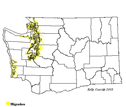 In Washington, sightings of the Little Gull are rare and occur primarily in the fall (September-November) in coastal and western Washington regions in aquatic habitats. Look for them in mixed flocks with Bonaparte's Gulls. American Lake near Fort Lewis (Pierce County) and Point No Point (Kitsap County) are traditional sites for this species.