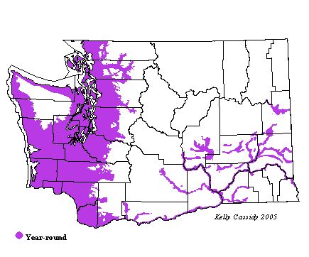 Bewick's Wrens are common year round at lower elevations throughout western Washington. In southeastern Washington, they are found along major rivers. They can also be found around Spokane. Their population is increasing in eastern Washington, but is still fairly scattered.