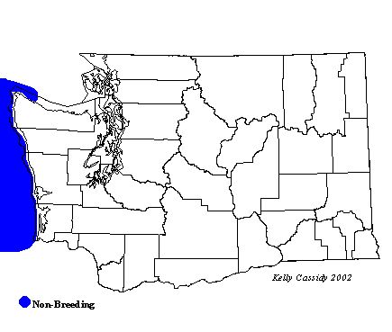 Most migration takes place offshore. Numbers moving through Washington during migration are highly variable from year to year. Since Black-legged Kittiwakes do not breed in Washington, migration is when we are most likely to see them. The fall movement begins in August and peaks in September. The highly variable spring migration may be more conspicuous than fall and runs from early April to early June.