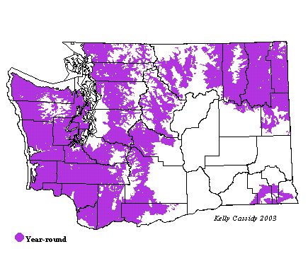 Ruffed Grouse are permanent residents in Washington, although they will make short, seasonal movements to areas with more dense cover in the winter.