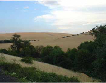 The altitude of this drainage runs from a low of 1,900 feet up to 3,100 feet along the north fork of the stream. The low-elevation sites are covered with black hawthorn, blue elderberry, wild plums, feral apples, and cherries, and right along the creek are scattered black cottonwoods, willows, and black locust. Along the eastern edge of the lower-elevation riparian buffer zones are vast dry-land wheat fields. Annual precipitation ranges from 19 inches to 24 inches. At 2,100 feet, the first conifers appearā??a thin sprinkling of Ponderosa pine and Douglas fir. As one ascends to higher elevations, the fir, western larch, and lodgepole pine dominate the wet north-facing slopes. Most west-facing slopes at higher elevations are free of trees and dominated by grasses and low forbs. Shrubs, including ninebark, shadbush, serviceberry, Juneberry, oceanspray, snowberry, sticky currant, and bitter cherry, appear along the transitional zones.
